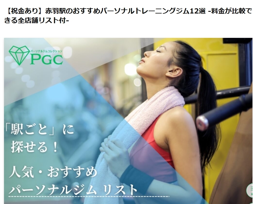 赤羽駅周辺のパーソナルジムが気になる方は、こちらの記事も参考にしてください!
