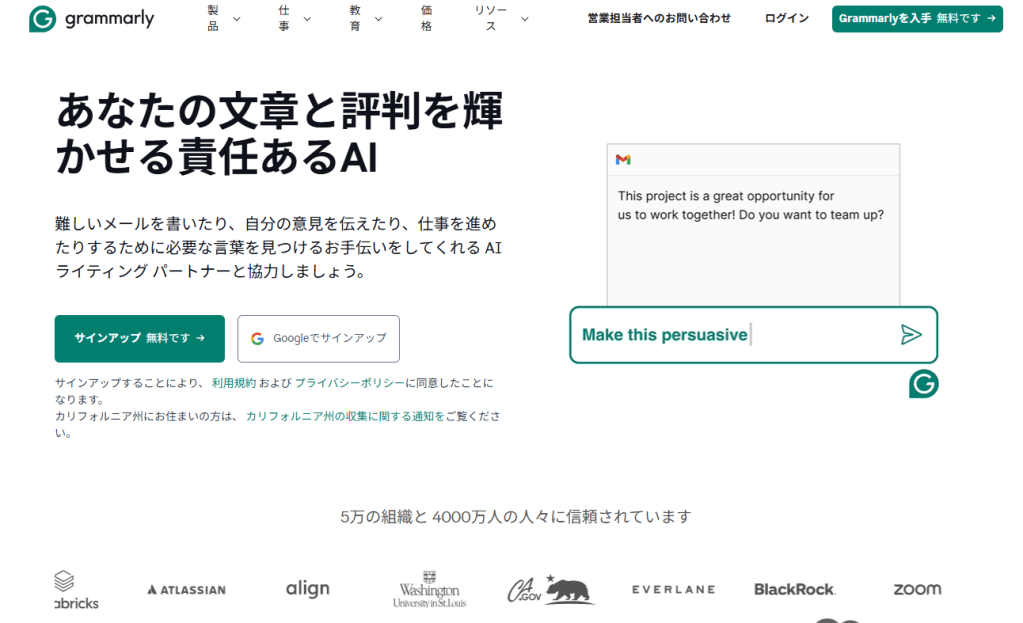 文法やスペル、句読点の誤りを検出するだけでなく、文章の明瞭さや正確さ、効果を高めるための提案もしてくれます。