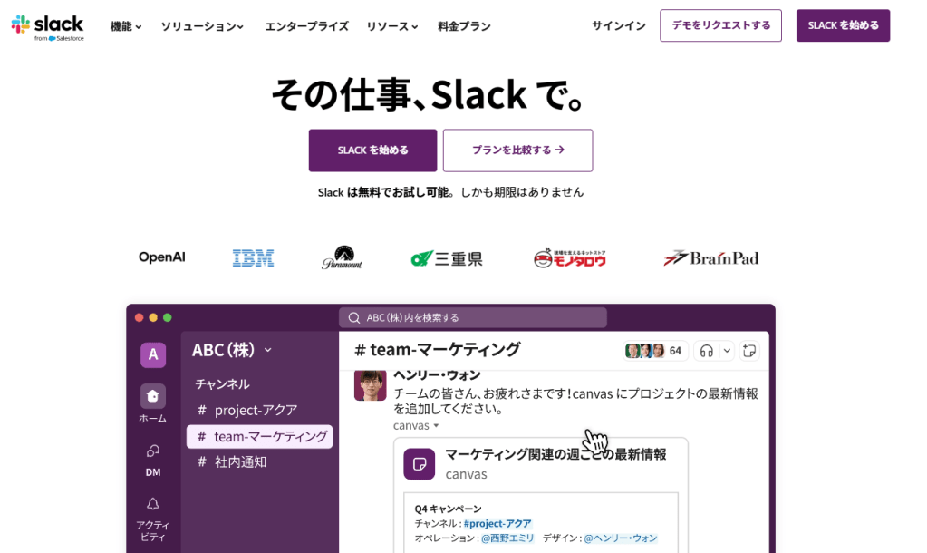 Slackは、リモートワークや分散型チームでのコミュニケーションを円滑にし、生産性向上に貢献するツールとして、多くの企業で導入されています。