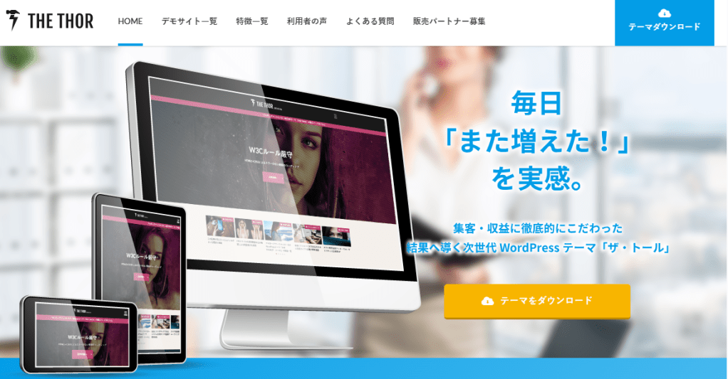 THE THOR(ザ・トール)は、株式会社FITが開発・販売しているWordPressテーマで、SEO対策やデザイン性、高速表示や収益化支援など、多岐にわたる機能が充実しています。