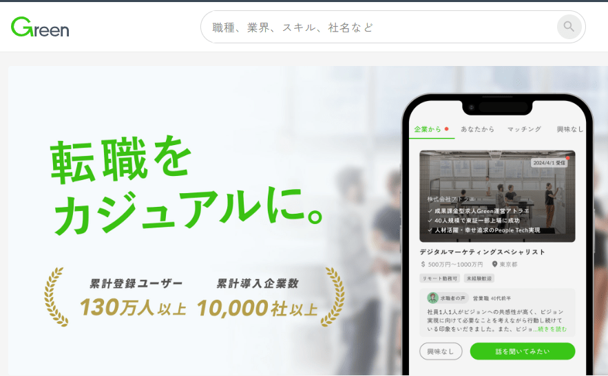Green(グリーン)は、株式会社アトラエが運営するIT・Web業界に特化した転職・求人サイトです。 技術解説記事や業界ニュース、導入事例やインタビュー記事など、専門性の高いコンテンツ作成が求められる案件が多く見受けられます。