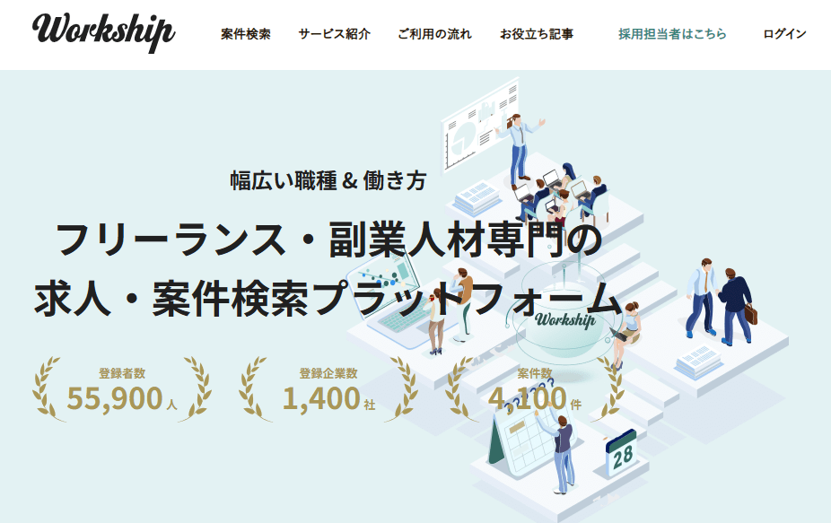 Workship(ワークシップ)は、株式会社GIG(ギグ)が運営する、フリーランスや副業人材と企業を繋ぐマッチングプラットフォームです。 WorkshipのWebライター求人は、フリーランスや副業で活躍したいプロフェッショナル向けの案件を多数掲載しています。