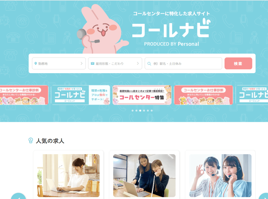 コールナビはその名の通り、コールセンターの求人に特化した専門サイトです。