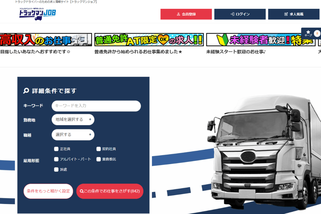 トラック運転手への転職におすすめの求人サイトには、以下の4つのサイトが挙げられます。