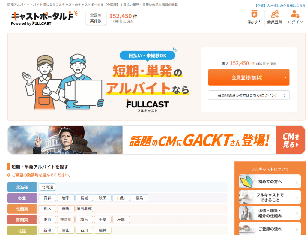 キャストポータルは、株式会社フルキャストホールディングスが運営する、短期・単発アルバイトに特化した求人サイトです。